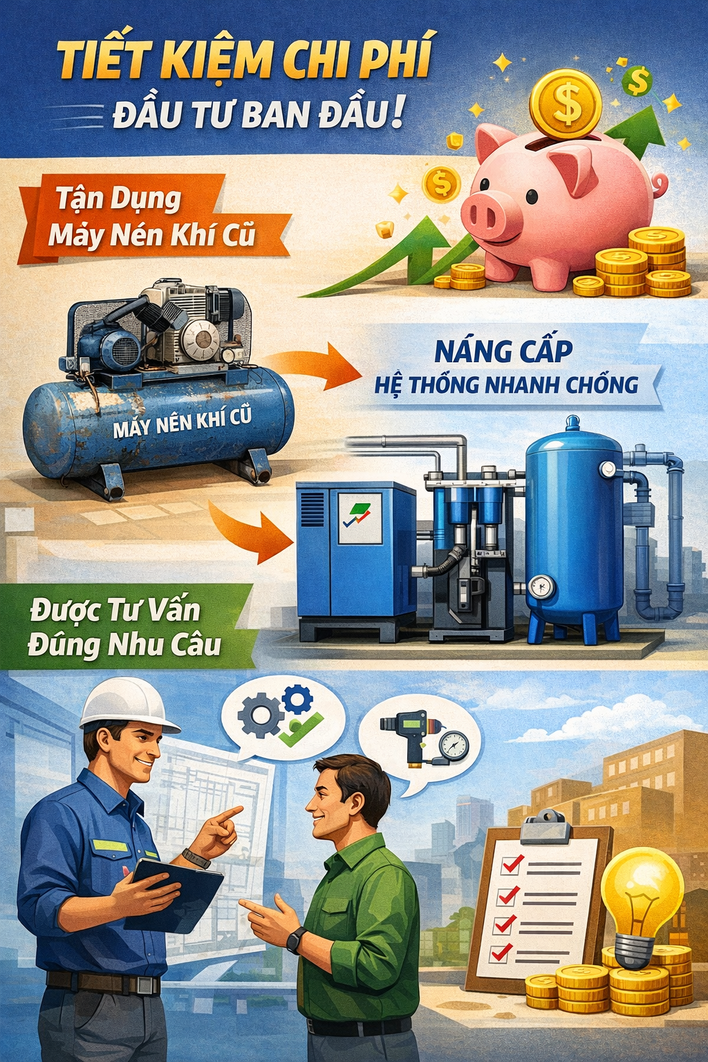 - Trao đổi nâng cấp hệ thống khí nén